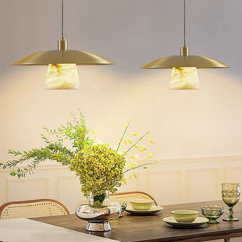 Adjustable Brass Pendant Light with Natural Alabaster Shade