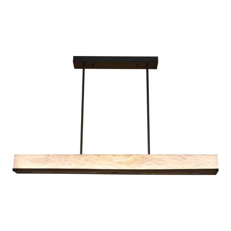 Elevate your dining or bar space with this elegant linear pendant light, blending Italian minimalism with refined Chinese aesthetics. Crafted from solid brass and authentic Spanish alabaster, the fixture showcases a harmonious balance of modern simplicity and timeless natural texture.